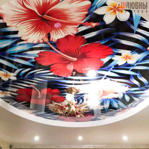 Нестандартное функциональное решение, объединяющее в себе надежную светодиодную подсветку и светопропускающее полотно с нанесенным изображением. Это потолок-витраж, который не только украшает, но и освещает комнату.